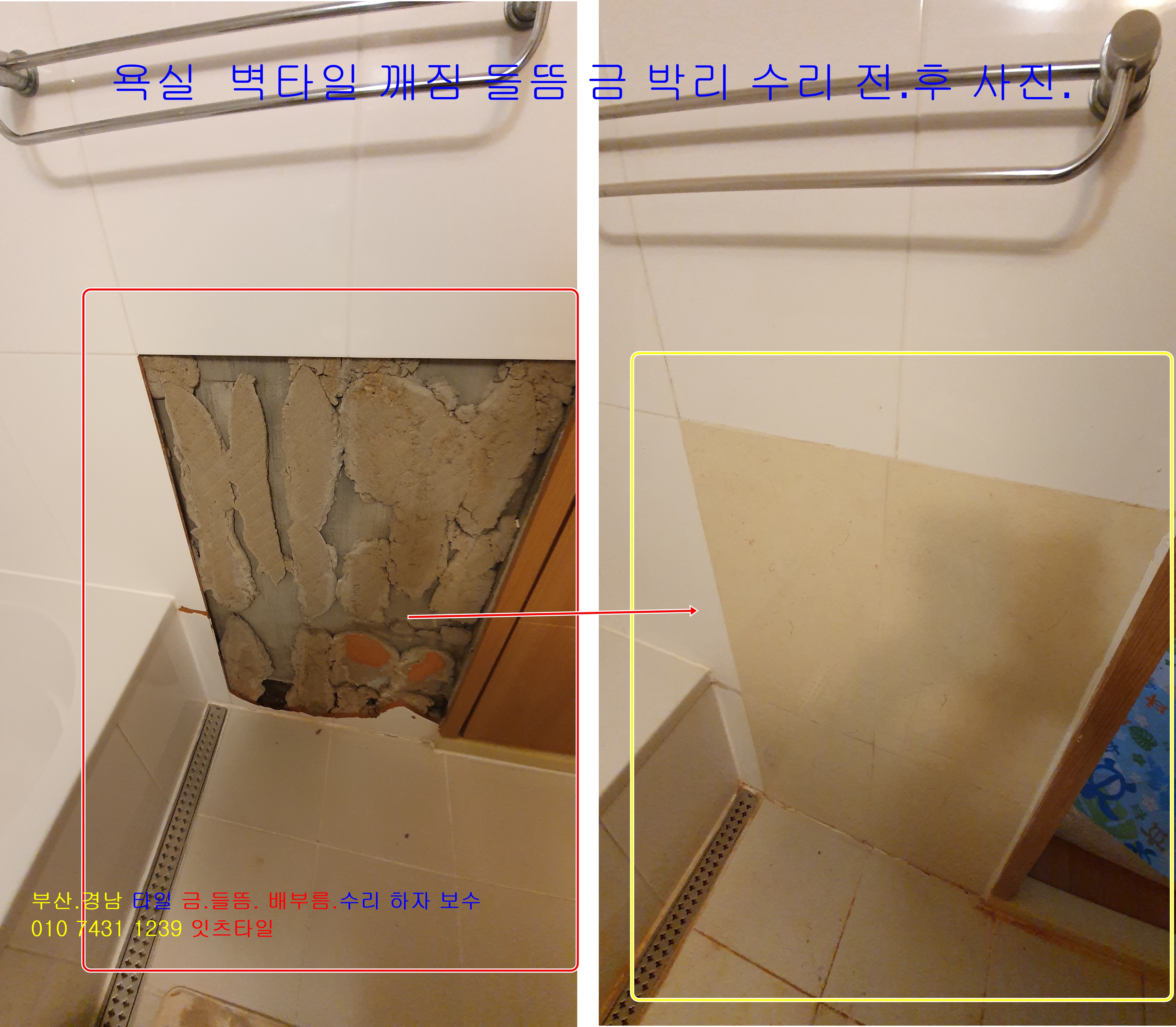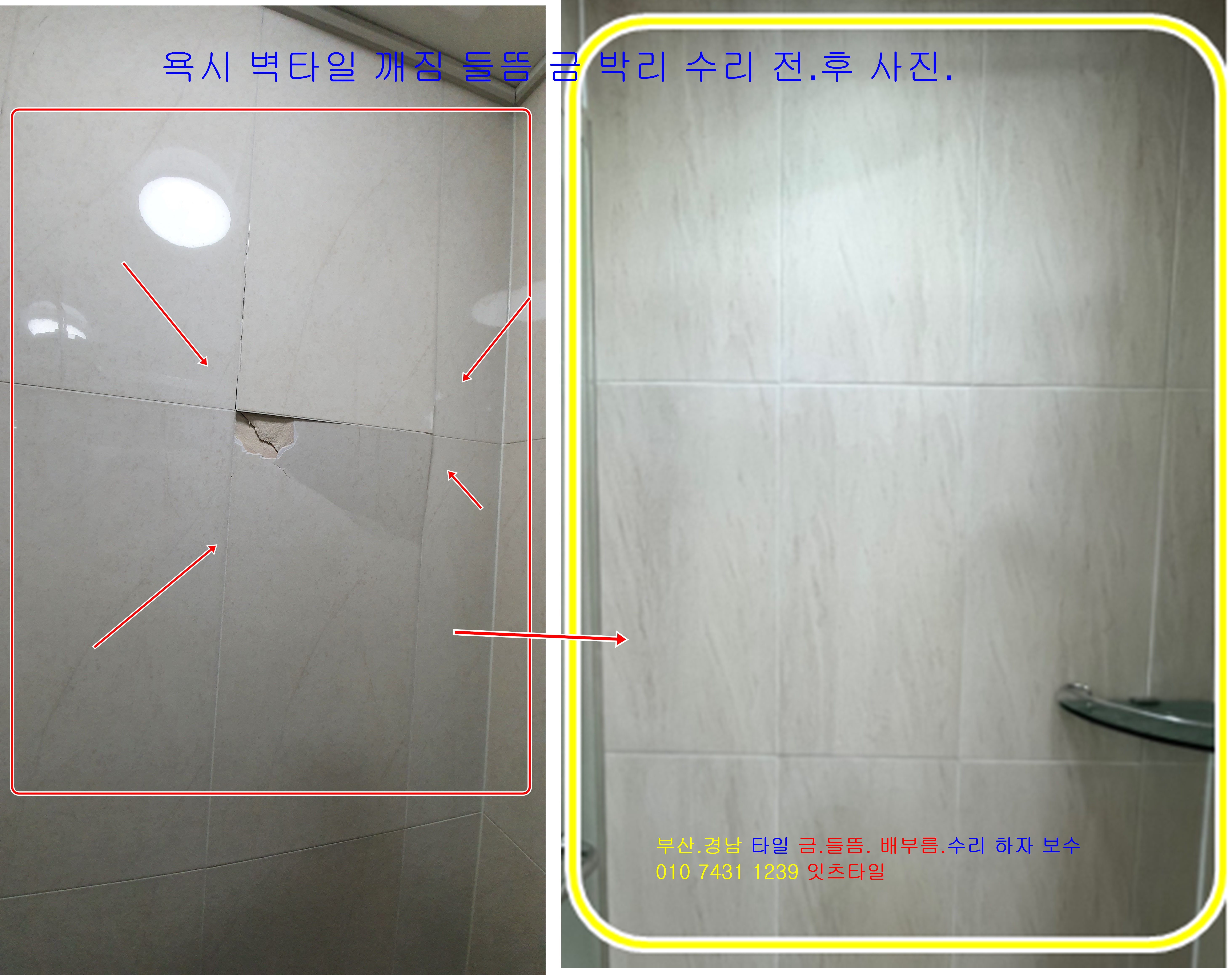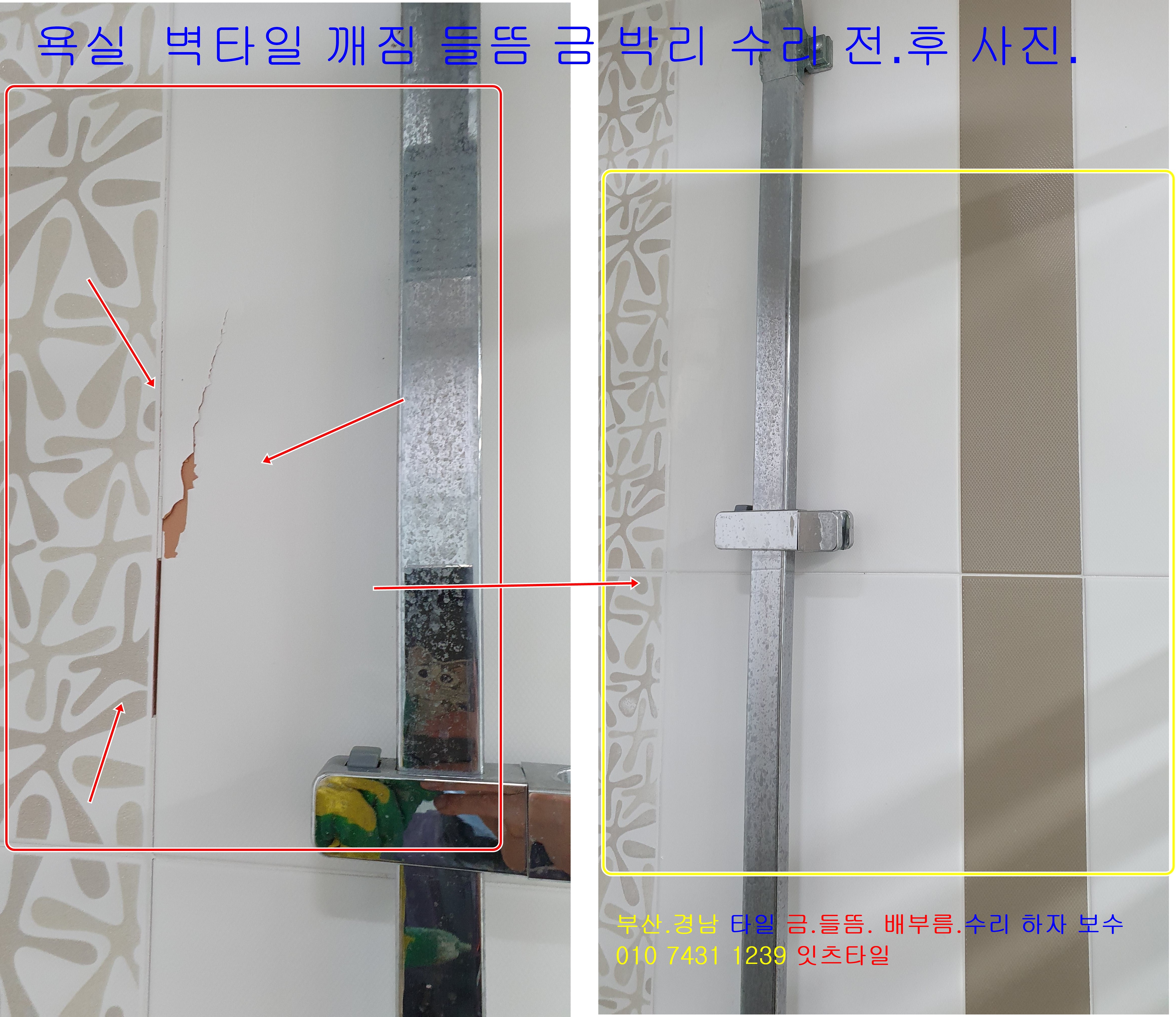 타일 벽 바닥 금 팽창 터짐 깨짐 구멍 솟음 크랙 하자보수